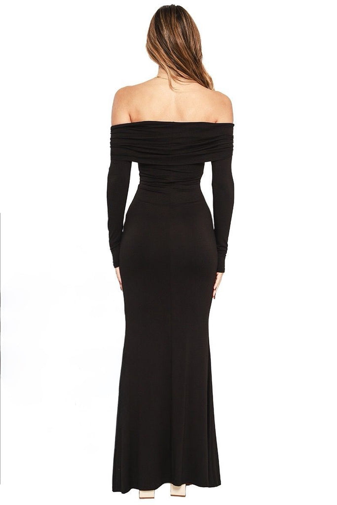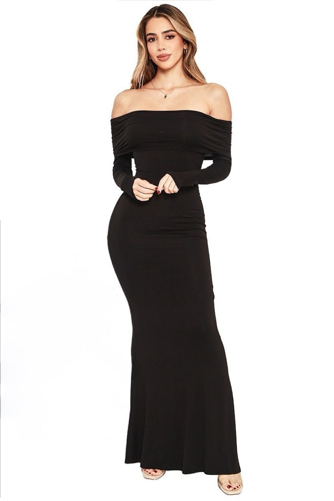 Meet your new go to black dress. The Alana Mermaid Maxi dress is crafted in a buttery smooth, double layered fabric that shapes and hugs your curves in all the right places. The off the shoulder neckline gives a soft, feminine touch while the shaping stretch sculpts your waist and hips beautifully. It’s elegant, timeless, and guaranteed to make you feel unforgettable the moment you slip it on.